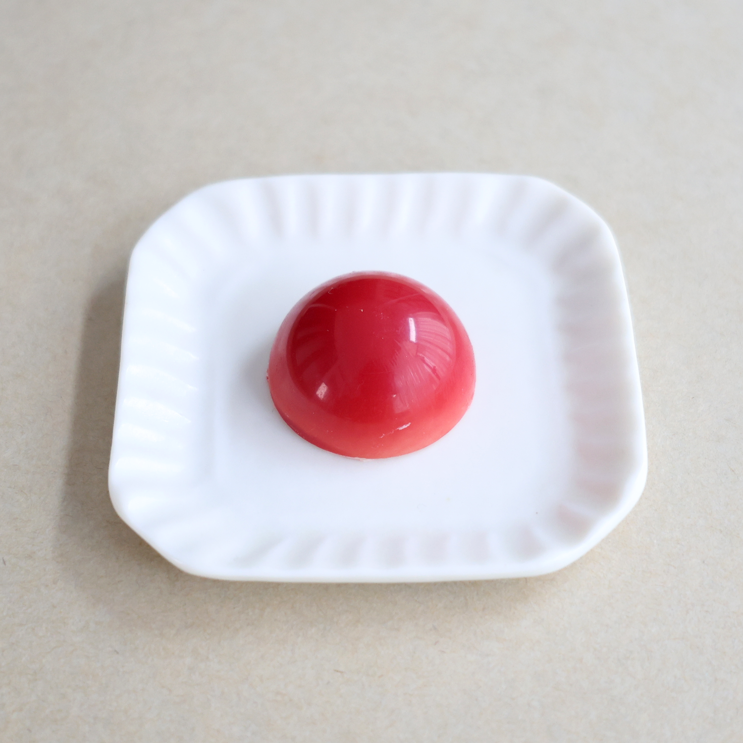 【ボンボンショコラルージュ】 ラズベリーガナッシュのボンボン。ガナッシュはラズベリーピューレをじっくり煮詰めてほんの少しだけミルクチョコレートを加えました。ラズベリーの風味をたっぷり感じていただける本格的なボンボンです