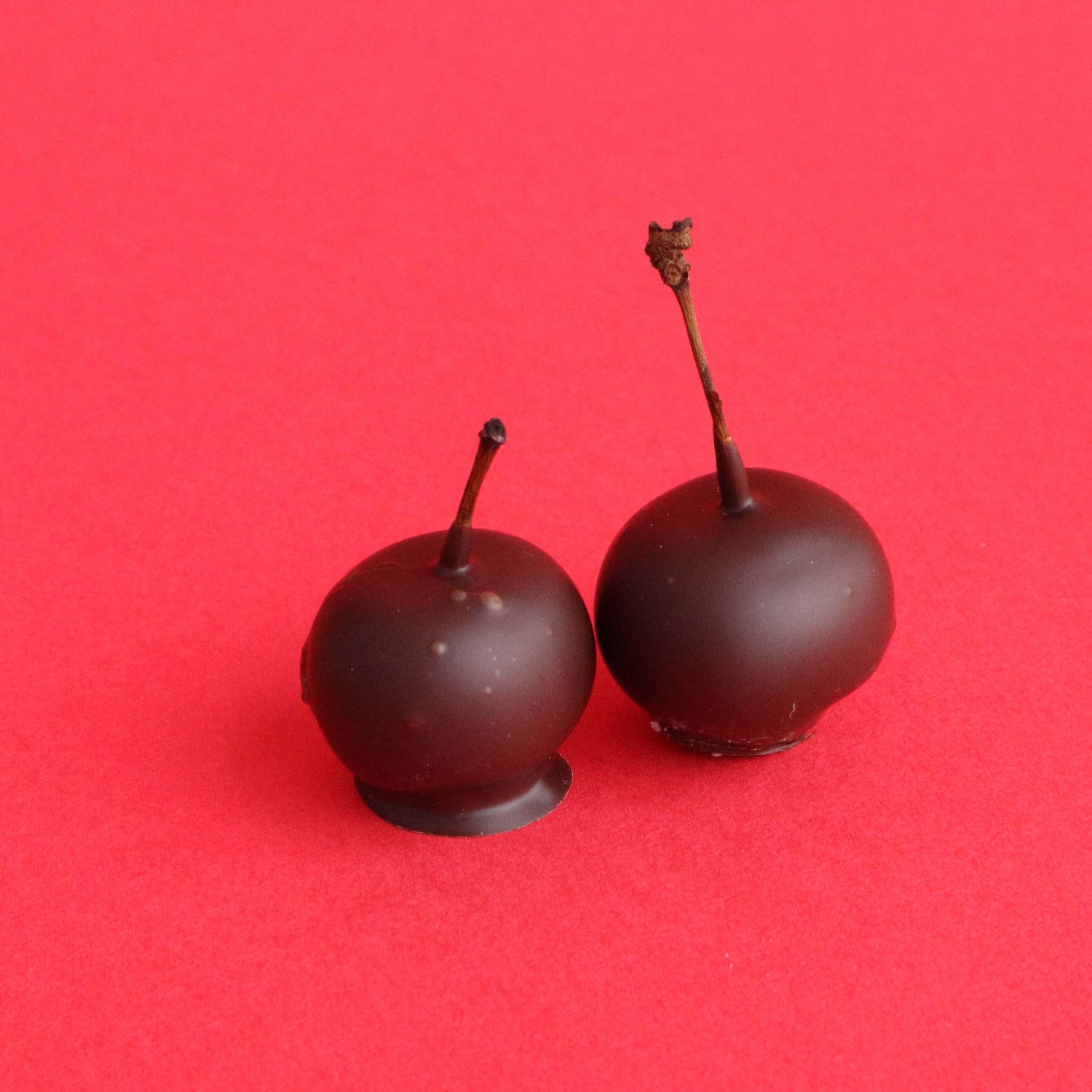 山形県の菅野さんから分けていただいた「佐藤錦」をキルシュ(さくらんぼ酒)とオーガニックシュガーに6ヶ月じっくりと漬け込み、一つひとつ丁寧にフォンダンを纏わせ、オーガニックショコレートでコーティングをしました。