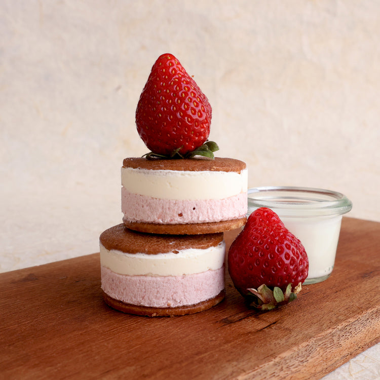 サブレは「美瑛の風」と名付けた美瑛産のラ・テールオリジナルブレンドの小麦粉を使い、隠し味にオホーツクの塩を加え4mmの厚さにのばしています。生地を仕込んでから1晩寝かせて、薄く焼き上げたサブレはサクサク、ホロホロと心地よい食感で、クリームとおいしさを引立て合っています。