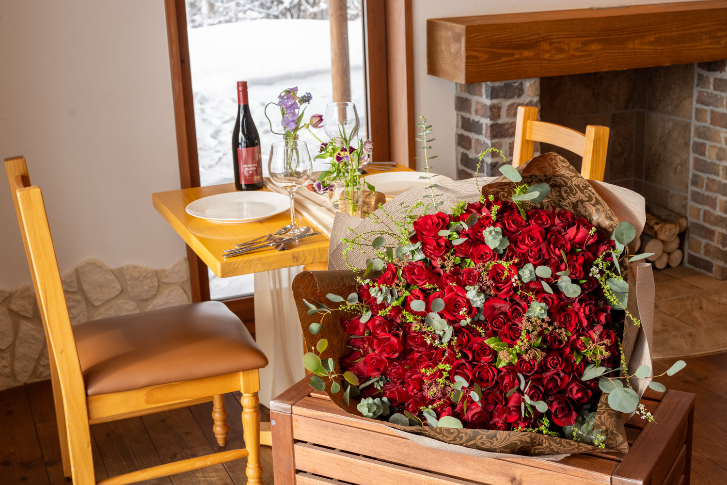 レストランを貸切り、大切なプロポーズをお手伝いいたします。お二人の為の特別なお料理やお花いっぱいのテーブルセッティング等ご要望にたっぷりお応えします。108本のバラのブーケもご用意可能です!