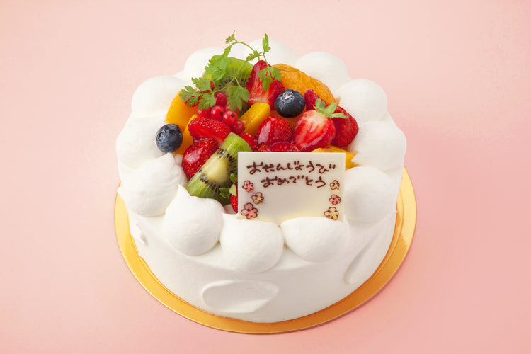 このケーキには、その日に仕入れた旬のフルーツを使用いたします。クリームやフルーツなどの飾りつけも季節により異なりますので、ご要望がございましたら、お電話にてお問い合わせ下さいませ。