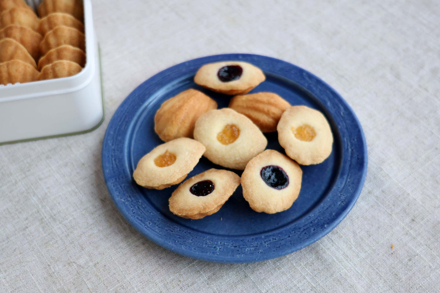 ちいさいマドレーヌ型で焼いたクッキーに、同じく自家製コンフィチュールを合わせました。缶にたっぷりと詰め合わせた様子はとってもキュート!シンプルだからこそ飽きが来ず、全部食べてしまいそう!