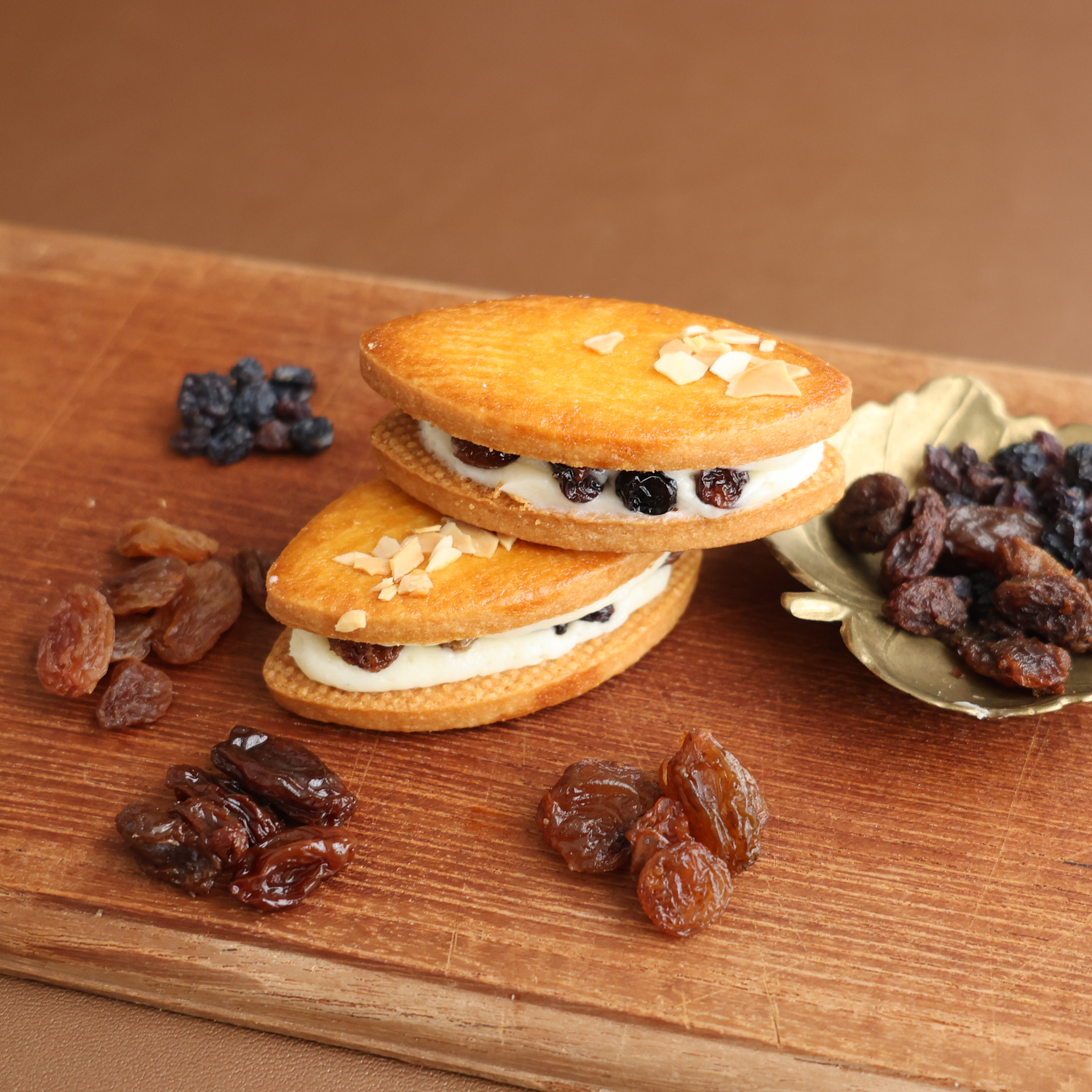 そしてレーズンの深みあるコクが、バタークリームの旨みと重なって広がる、一口ごとに楽しいリッチなレーズンサンドをお楽しみください。