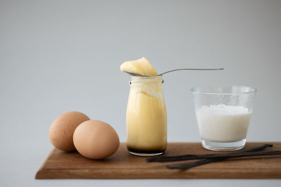 材料が4つだけのシンプルなプリン。生クリームを使わず卵の黄身だけで、低温でじっくりと時間をかけて丁寧に焼き上げました。とてもなめらかでとろけるようなくちどけが人気です。