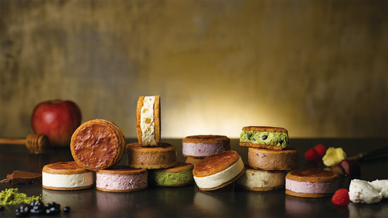 用於夾餡的 Sablé Breton(布列塔尼沙布列),選用La Terre 100% 美瑛小麥獨家調製的麵粉「美瑛之風」,加入鄂霍次克海鹽作為隱藏提味,將麵團桿至 4mm 靜置一晚薄烤而成。入口酥脆香鬆,與奶霜相互襯托, 美味更加凸顯。