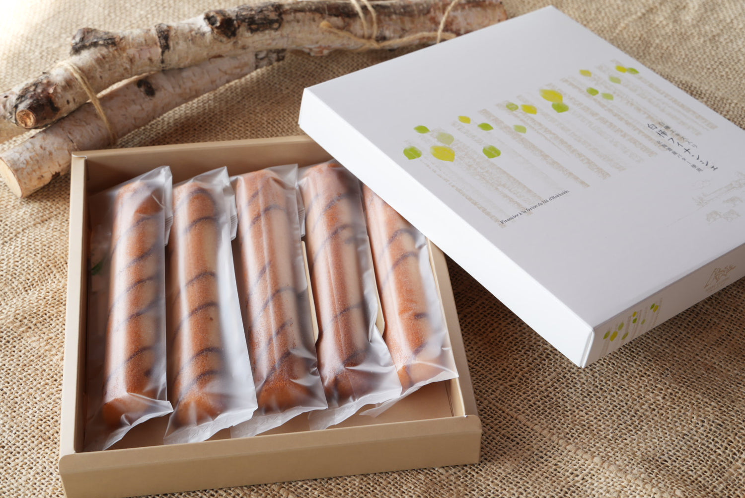 白樺樹被指定為美瑛町象徵樹種,而我們將遍布美瑛小鎮的白樺景致為靈感,烘焙出這款費南雪。麵糊中加入美深町的白樺樹液,散發自然清新的風味。