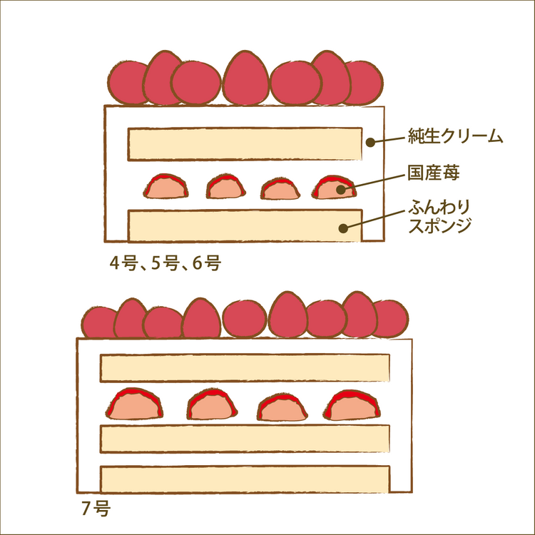 ※4号(直径12cm/3-4名様分)5号(直径約15cm/5-6名様分)6号(直径18cm/7-8名様分)7号(直径21cm/9-12名様分)